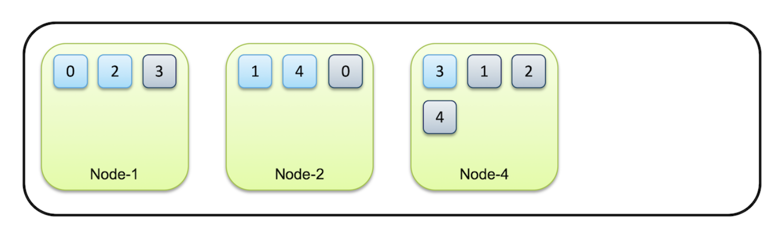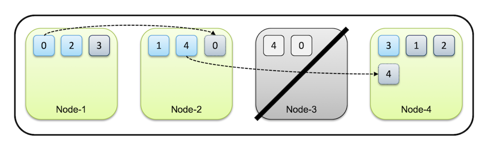 위 그림처럼 Node-3에 장애가 발생하더라도, Node-1과 Node-2가 Node-3이 가지고 있던 0,4번 샤드에 대한 정보를 가지고 있기 때문에